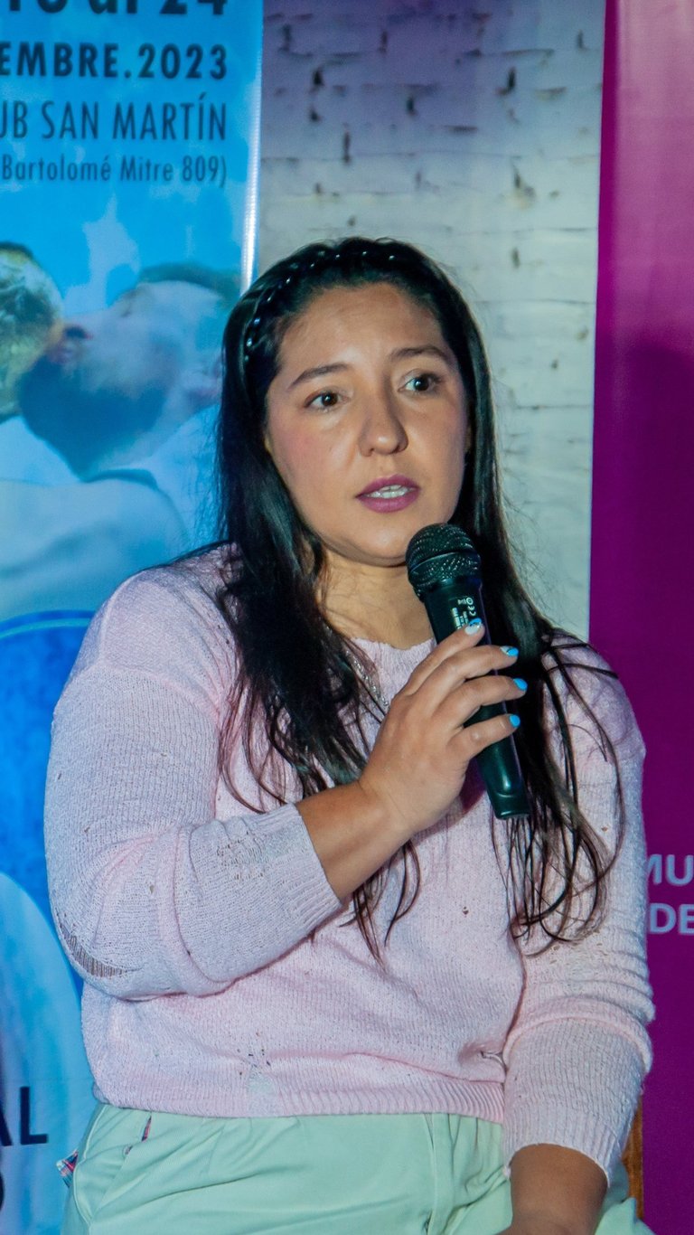 La licenciada Marcela Browne, quien dirigió un taller para estudiantes de escuelas secundarias sobre "Juventudes, participación y fortalecimiento democrático" así como un taller para docentes sobre "Trayectorias diversas e inclusión educativa" en la FMDL2023.