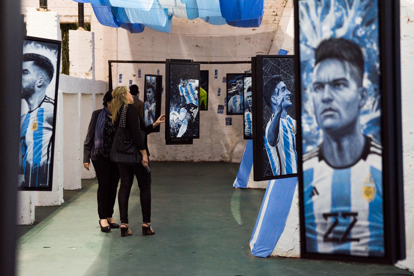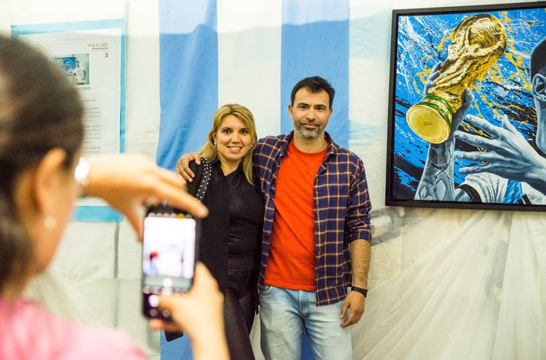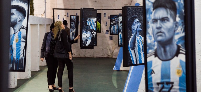 La exposición de Diego Rolón presentó más de 20 obras, cada una representando de manera individual a los campeones del mundo de la selección argentina. Cada obra fue creada en piezas únicas con la técnica de Realismo y Arte Pop, utilizando acrílico sobre lienzo para dar vida a estas impresionantes representaciones. Los cuadros estuvieron suspendidos en una instalación que recreó una cancha de fútbol, con pelotas dispuestas en secuencia para crear un efecto de movimiento que celebró los goles de la victoria. Cada miembro del equipo de la selección argentina estuvo ubicado ordenadamente dentro del espacio, creando una experiencia inmersiva que transportó a los visitantes al corazón de los momentos de gloria del fútbol argentino.